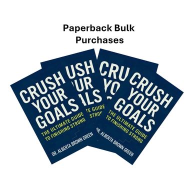This link is to purchase a paperback bulk order of "Crush Your Goals - The Ultimate Guide to Finishing Strong". If you are local to the Northeast Louisiana area, after you have purchased your bulk order, you can pick it up at our office, or request that we deliver it to you. If you are not local to Northeast Louisiana, then your purchases will be mailed to you. Please type your name, phone number, email, and address in the space provided below.